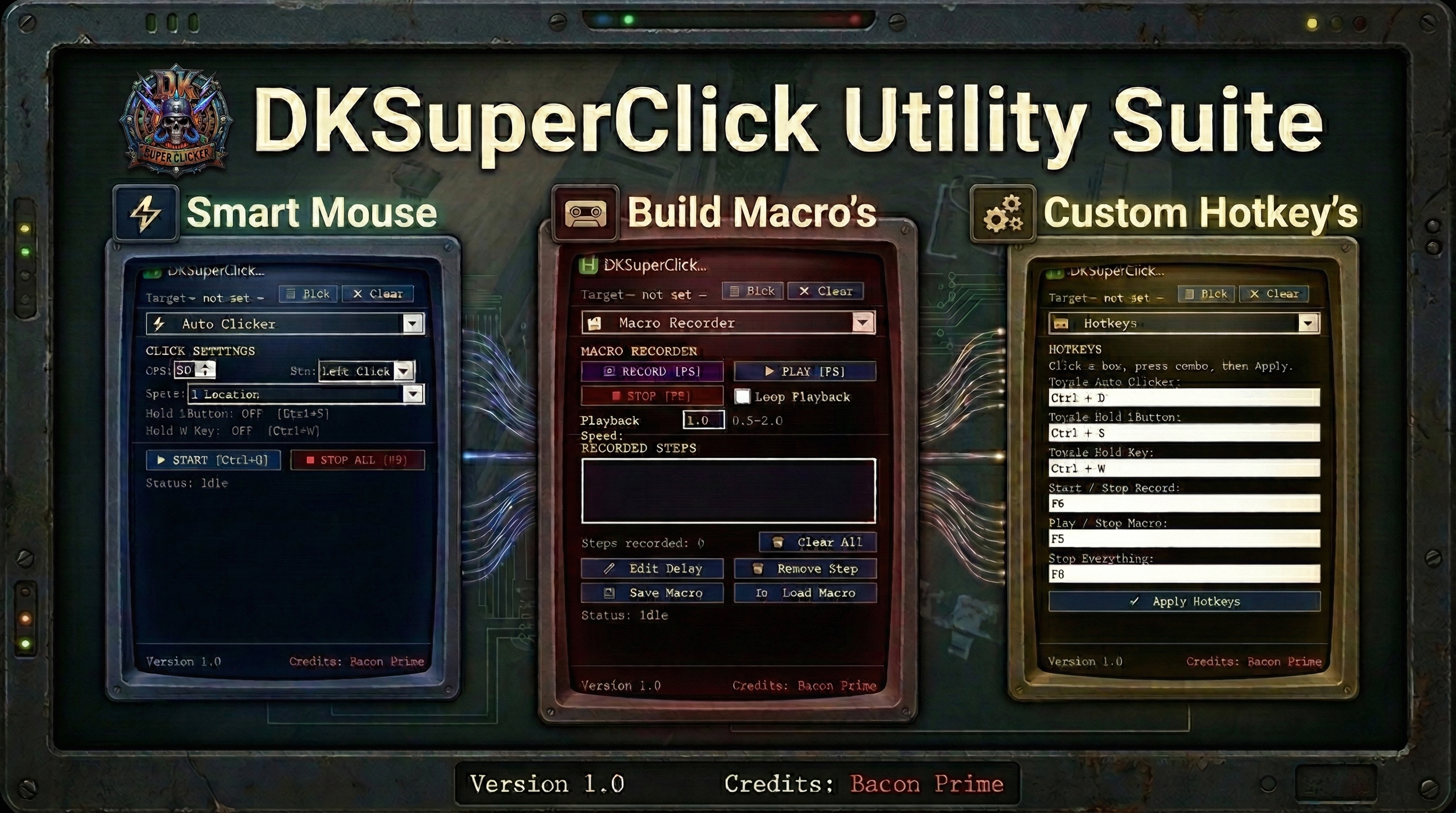It includes an auto-clicker, hold-key system, and a full macro recorder — all wrapped in a small, optimized UI that stays out of your way during gameplay.